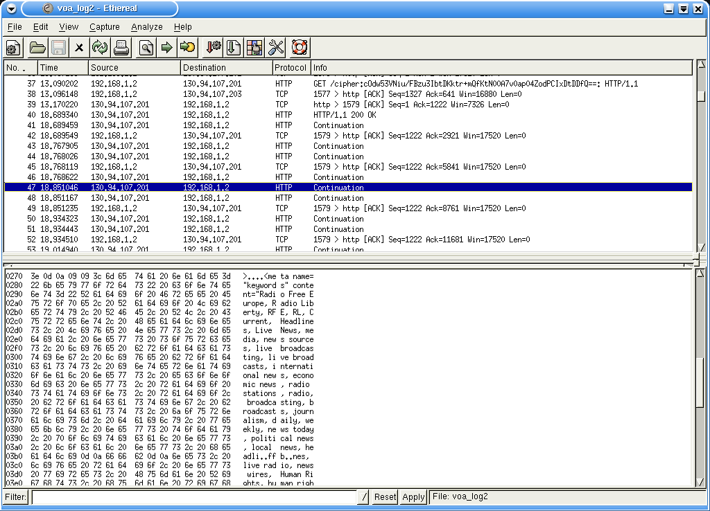 is connecting through the IBB Anonymizer at 130.94.107.201 to access the Radio